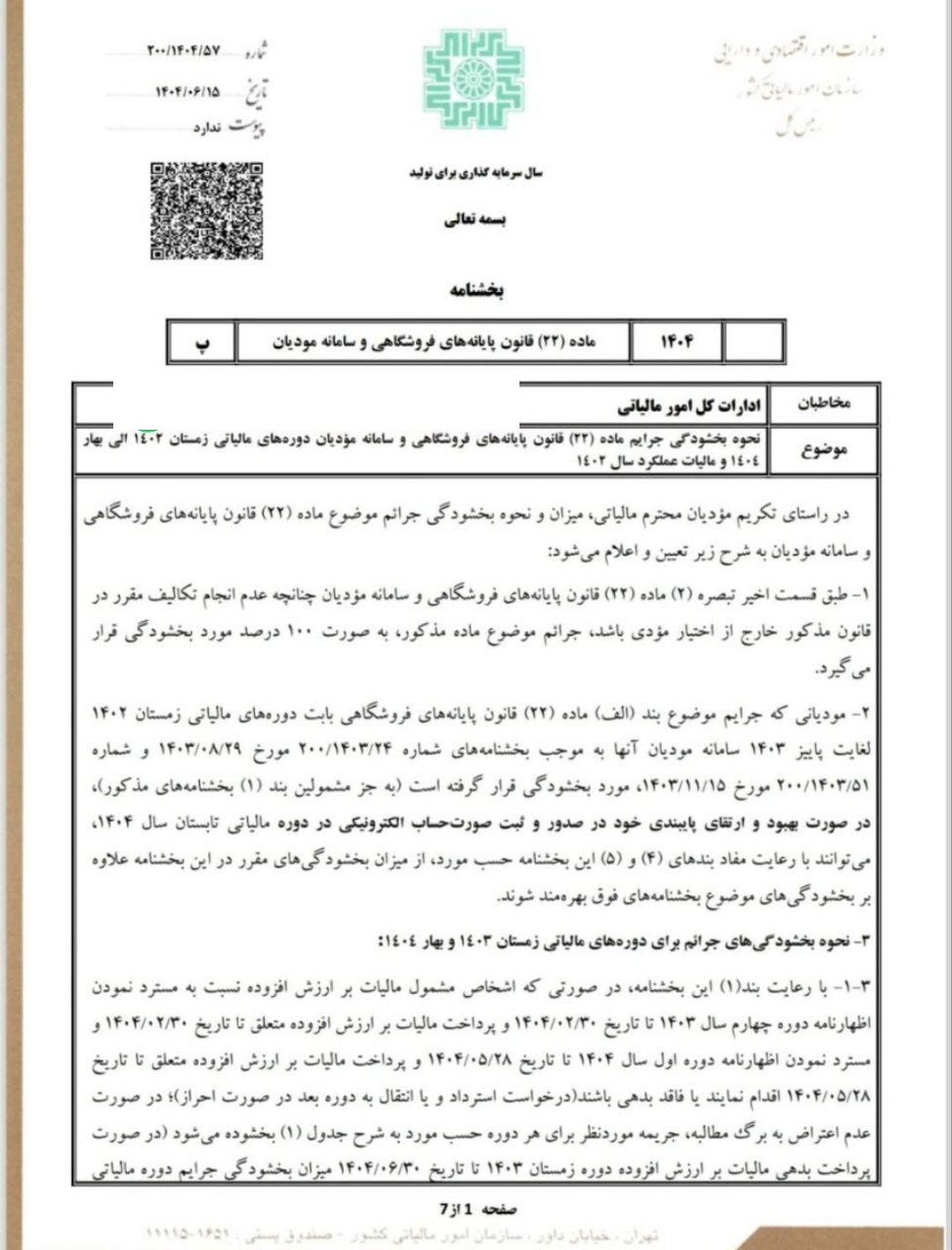 نحوه ی بخشودگی جرایم ماده ۲۲ قانون پایانه های فروشگاهی و سامانه مودیان