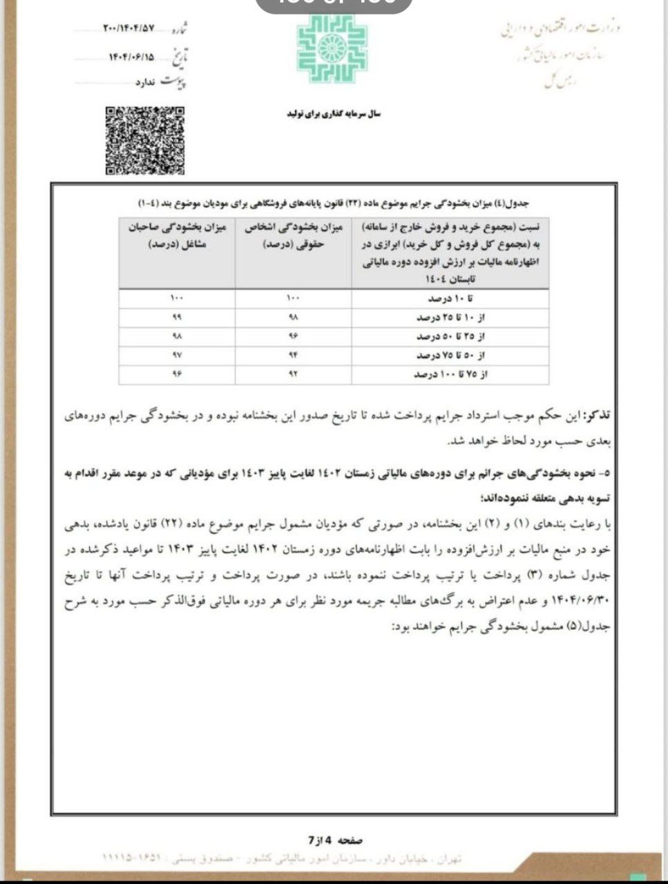 سازمان امور مالیاتی در بخشنامه جدیدی نحوه ی بخشودگی جرایم ماده ۲۲ قانون پایانه های فروشگاهی و سامانه مودیان (دوره مالیاتی زمستان۱۴٠٢ الی بهار ۱۴۰۴و مالیات عملکرد سال ۱۴۰۲) را اعلام کرد.